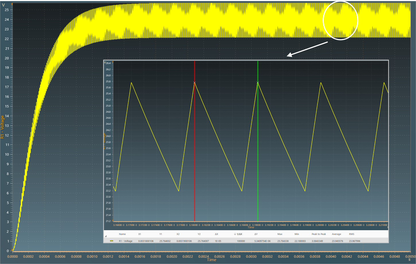 - an output voltage of 24 V (depending on duty cycle {D}),